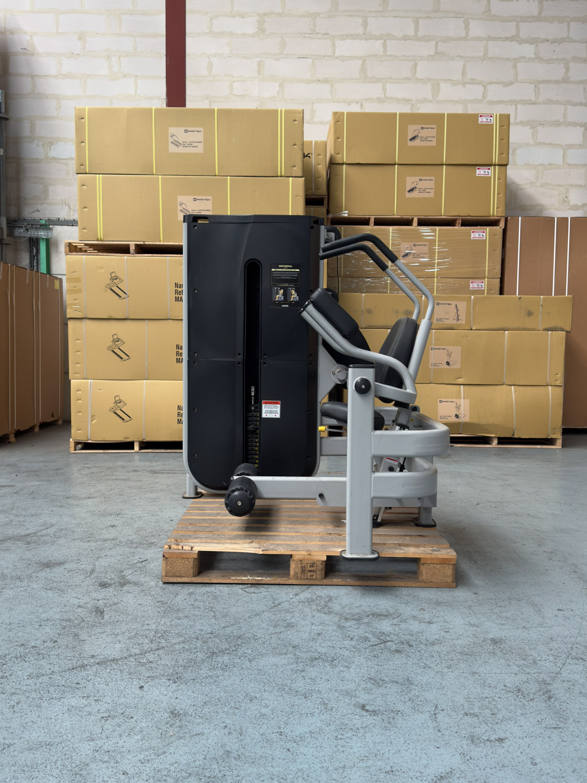 La tour de poids est entièrement carénée pour une sécurité optimale et un design épuré. Elle propose une colonne de charge allant jusqu’à 100kg, avec des incréments précis pour une progression constante. Le siège est réglable en hauteur via une goupille rapide (jaune) pour s’adapter à toutes les morphologies et garantir un alignement parfait avec l’axe de rotation de la machine. Les rouleaux de calage pour les jambes assurent un maintien ferme du bas du corps, permettant une isolation totale de la sangle abdominale. Un matériel de qualité industrielle, conçu pour durer et supporter un usage intensif en club de fitness ou centre de coaching.