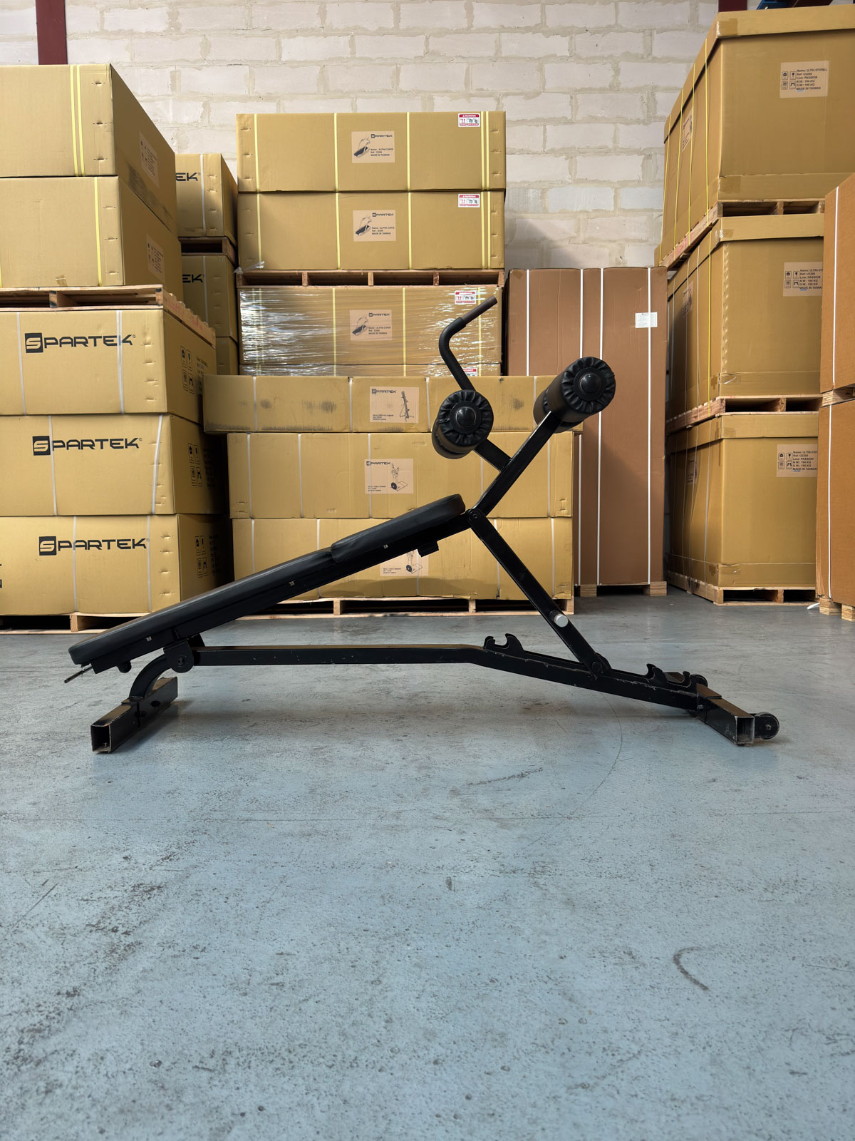 Ce banc à abdominaux est spécifiquement conçu pour offrir une inclinaison négative, augmentant ainsi l’amplitude du mouvement et l’intensité de l’effort par rapport à un travail au sol. Son système de réglage par crans permet de modifier l’angle de déclinaison, offrant une progression personnalisée selon vos objectifs de renforcement.
