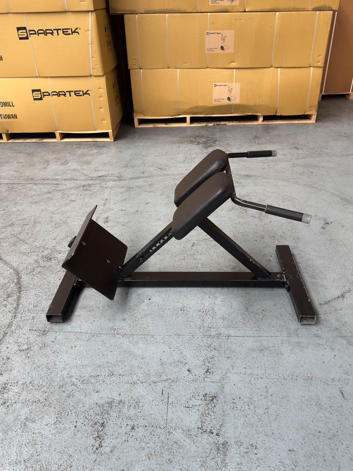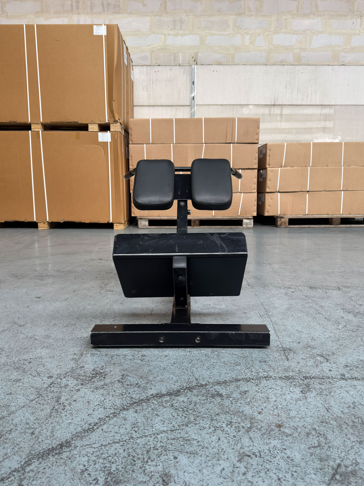 Le confort de l’utilisateur est assuré par deux coussins d’appui-bassin haute densité, divisés pour libérer la zone pubienne et favoriser une meilleure amplitude de mouvement. L’appareil est entièrement ajustable en hauteur par un système de goupille, permettant de s’adapter précisément à la morphologie de chaque sportif. Les larges poignées latérales facilitent l’installation et la sortie de l’appareil, tandis que la plateforme de pieds texturée assure un ancrage total. Un matériel de seconde vie robuste, simple d’entretien et prêt pour un usage professionnel immédiat.
