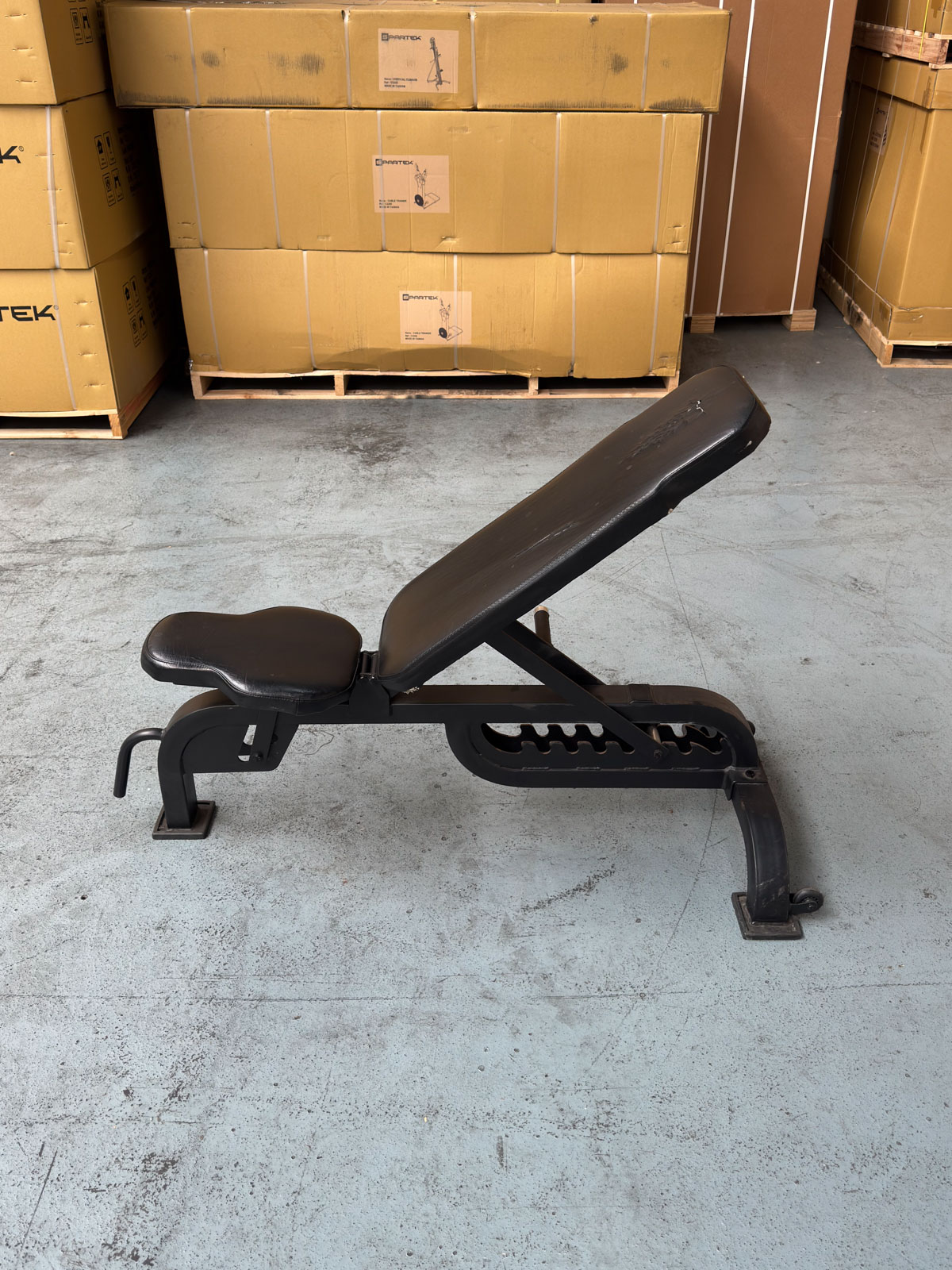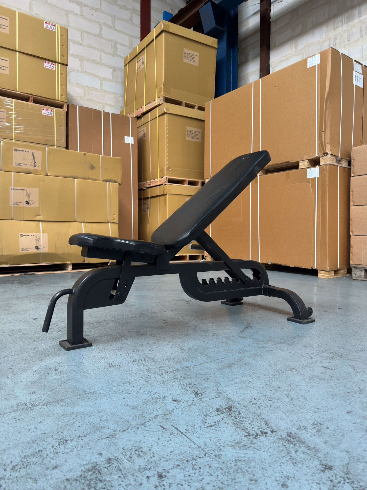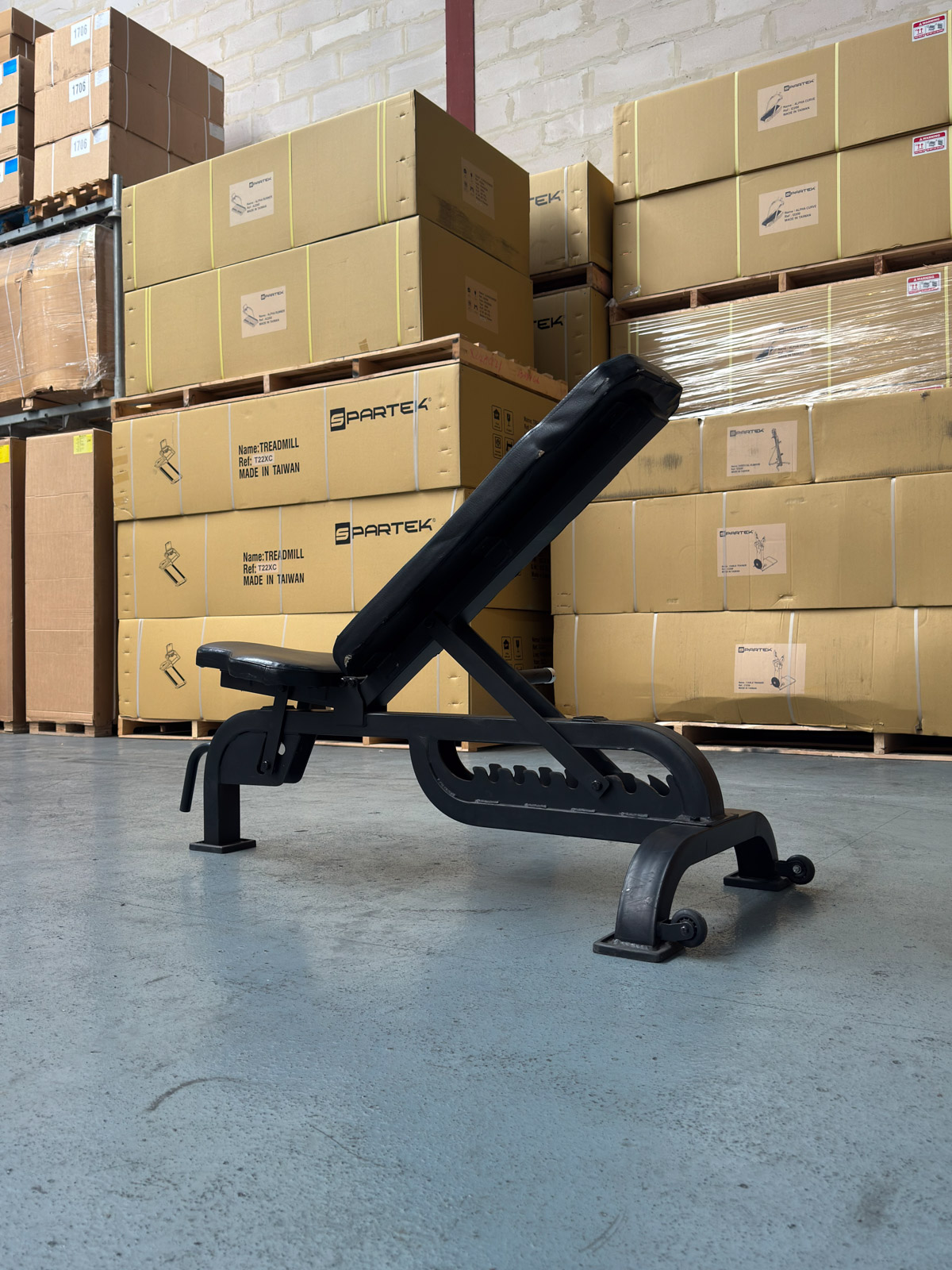L’assise est également réglable pour assurer un calage parfait du bassin, évitant tout glissement lors des exercices inclinés. La sellerie haute densité est étudiée pour offrir un soutien ferme et résister durablement à l’abrasion. Pratique, ce banc est équipé de roulettes de transport à l’arrière et d’une poignée de préhension à l’avant, permettant de le déplacer sans effort pour optimiser l’agencement de votre plateau technique. Ce matériel de seconde vie, en bon état structurel, combine la fiabilité du matériel professionnel à un design sobre et efficace.