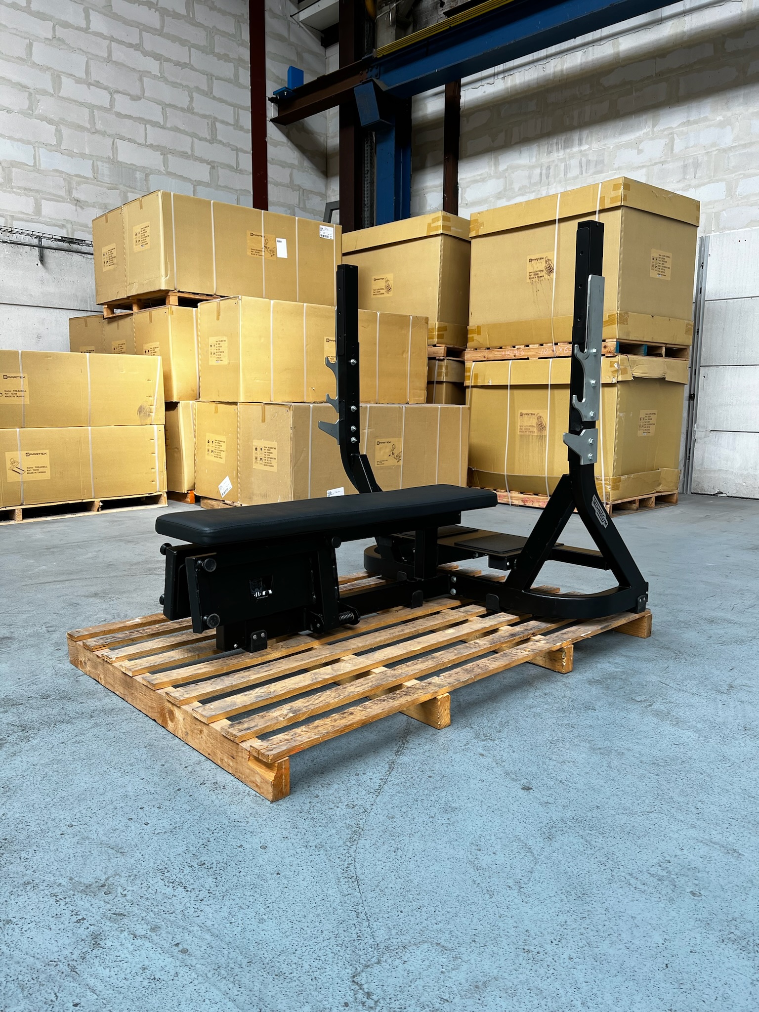 Description : Banc de musculation de qualité professionnel permettant de faire du développé couché à plat. Idéal pour le renforcement des pectoraux avec une barre olympique et des disques.