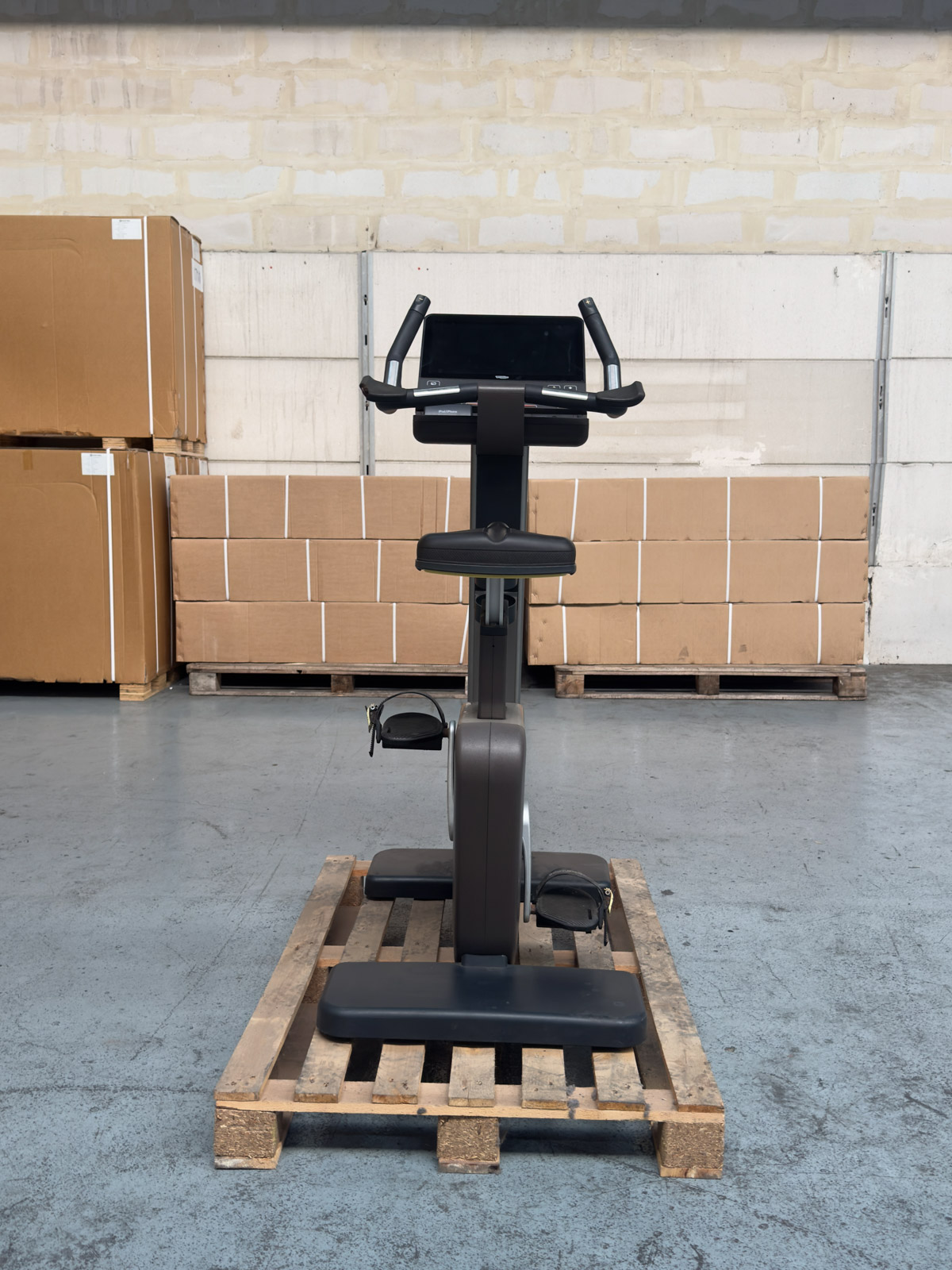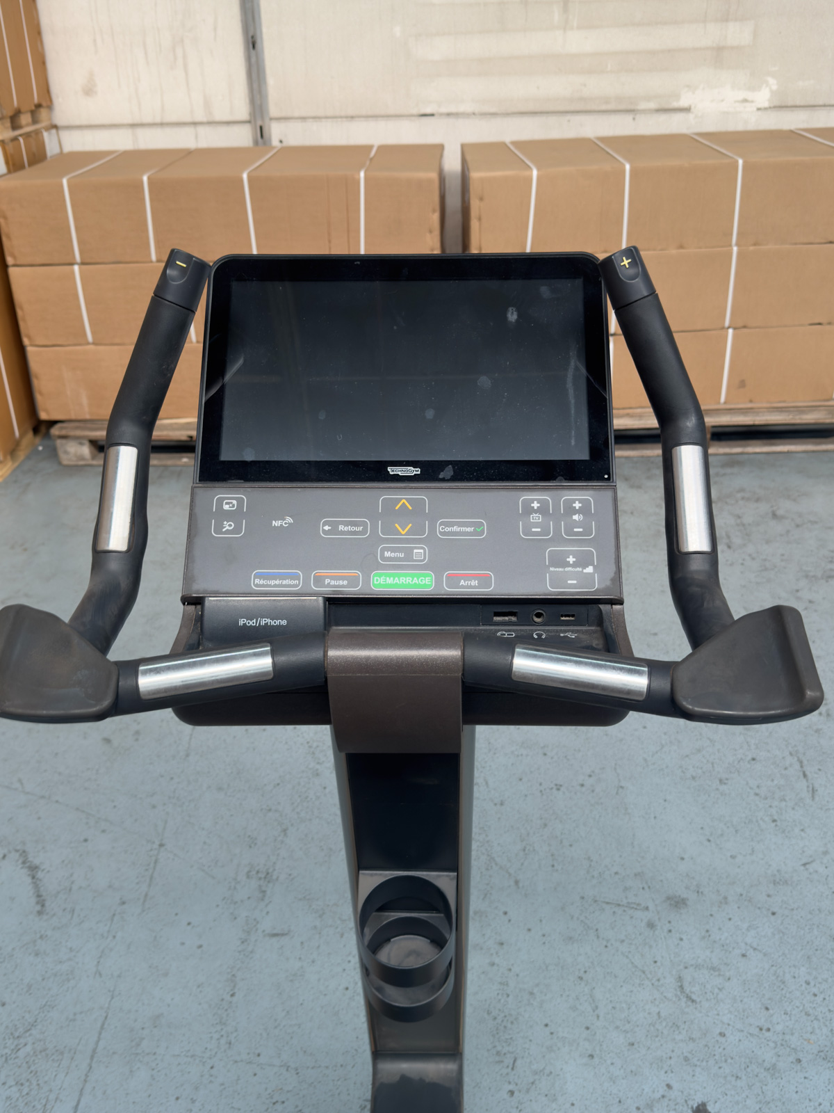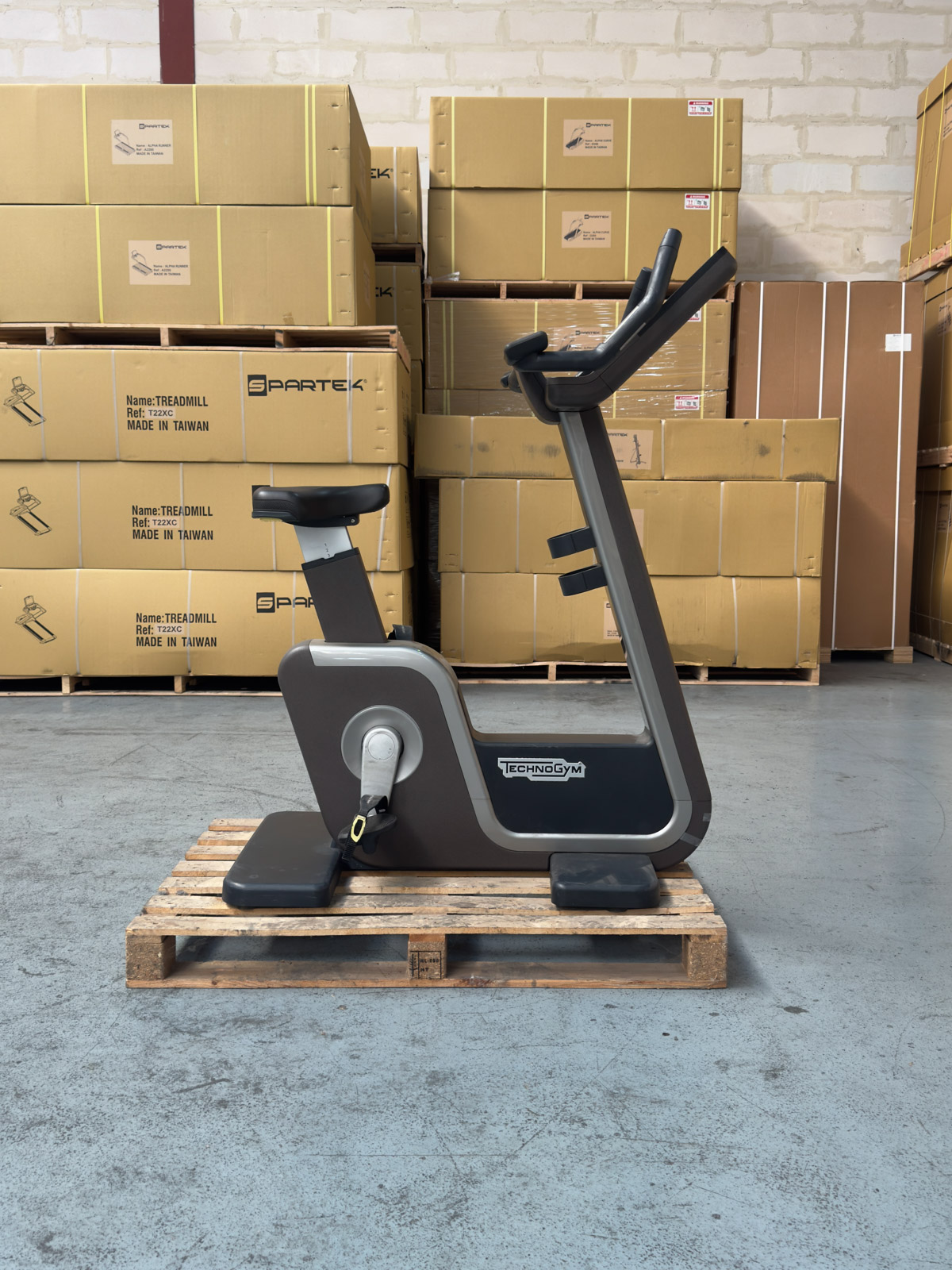 Vélo droit professionnel Technogym Artis haute performance. Pédalage fluide à intensité réglable et console tactile connectée Unity pour un entraînement cardio immersif et complet.
