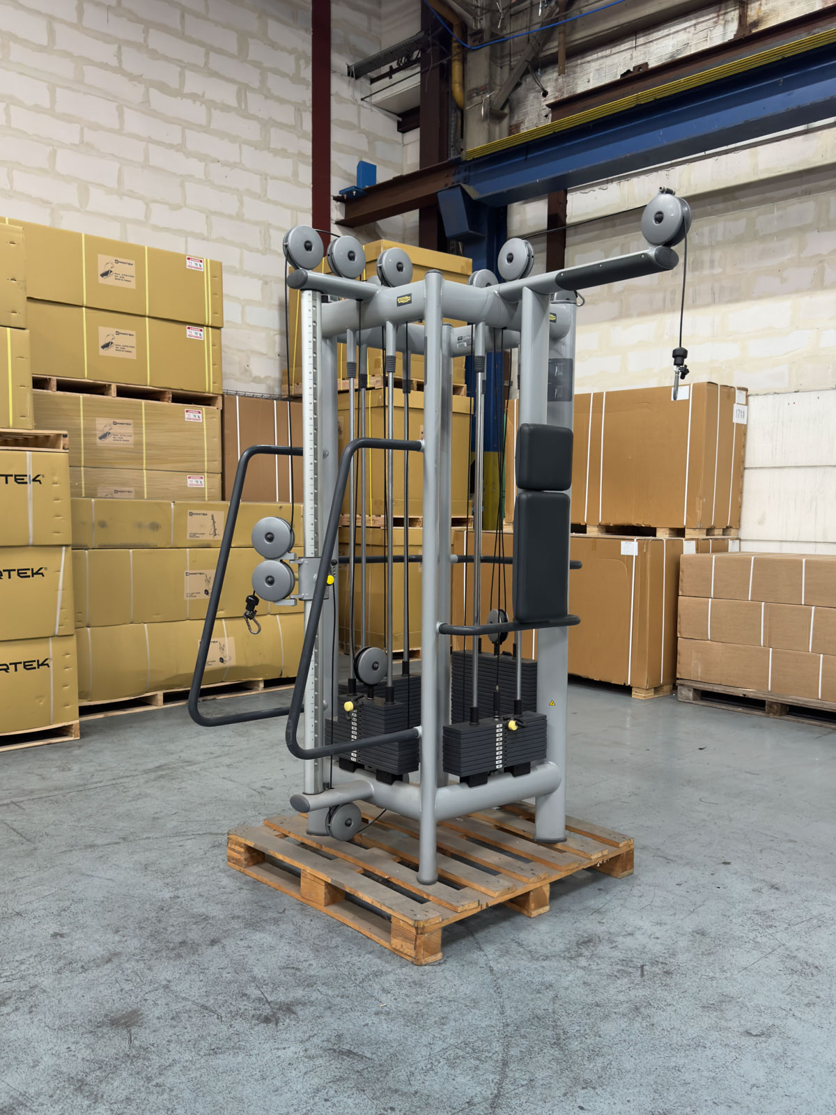 Équipez votre zone de musculation avec la référence du secteur : la Cable Tower M982 de Technogym. Cette station multifonction permet à quatre utilisateurs de s’entraîner simultanément grâce à ses colonnes de poids indépendantes et son système de poulies réglables. Conçue avec un châssis en aluminium ultra-résistant, elle offre une fluidité de mouvement exceptionnelle pour un travail complet du corps, alliant esthétique premium et robustesse industrielle.