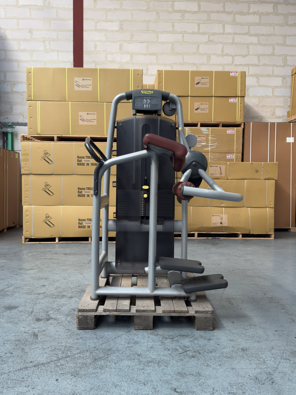 La Glute M979 de la gamme Selection de Technogym est la machine incontournable pour cibler spécifiquement les fessiers (grand et moyen fessier). Conçue pour reproduire le mouvement de "kick-back" en position debout, elle offre une isolation musculaire exceptionnelle tout en protégeant le bas du dos. Sa biomécanique de précision et sa fluidité de mouvement en font un choix privilégié pour les clubs de fitness, les studios de coaching et les centres de remise en forme.