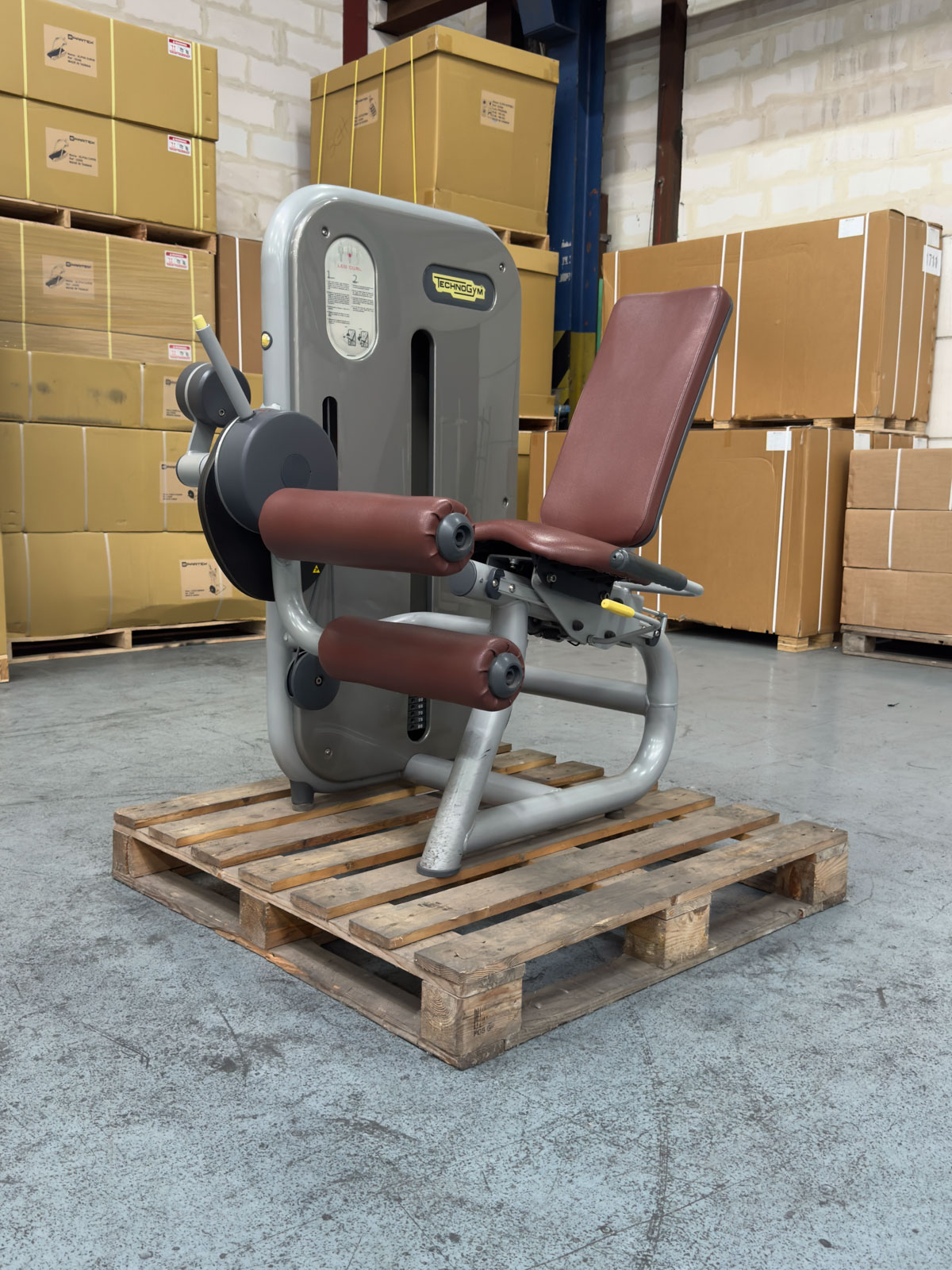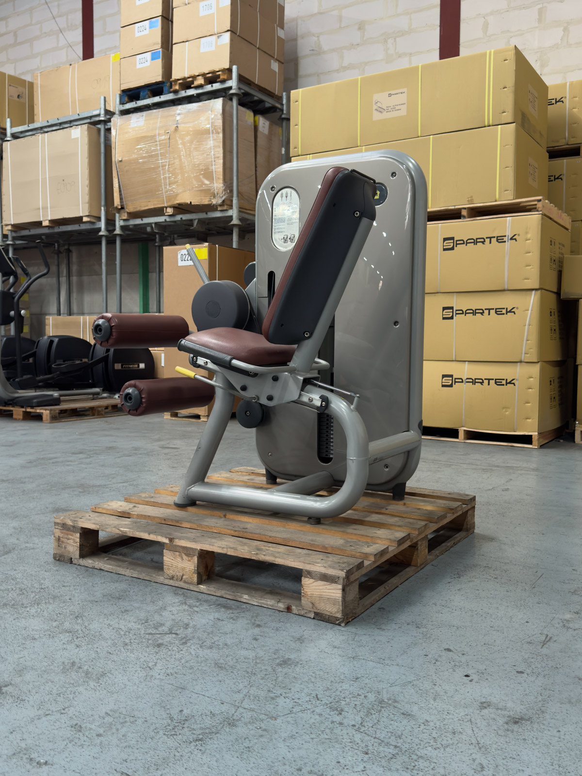 Le confort est au cœur de la gamme Element : le dossier incliné et l'assise haute densité (sellerie Bordeaux) assurent une stabilisation parfaite du bassin pendant l'effort. Les rouleaux de calage et le bras de levier sont facilement ajustables pour s'adapter à toutes les longueurs de jambes. Grâce à son levier de réglage ROM (Range of Motion) jaune haute visibilité, l'utilisateur peut définir l'amplitude de départ pour un entraînement progressif ou adapté à une rééducation. La colonne de poids est entièrement protégée par un carénage Gris élégant, garantissant une sécurité totale et un fonctionnement silencieux. Son format compact permet d'optimiser l'espace au sol sans sacrifier la performance professionnelle.