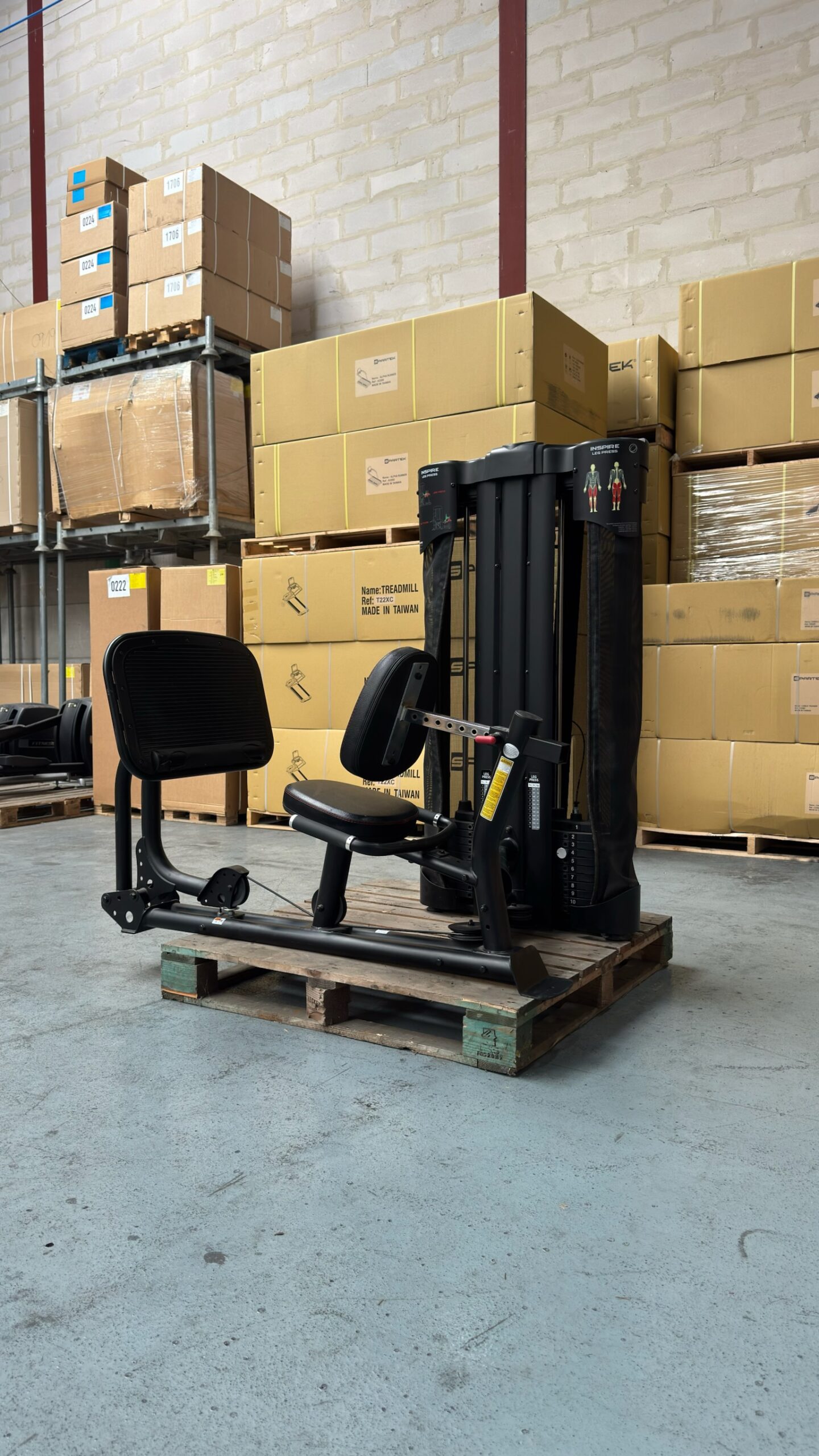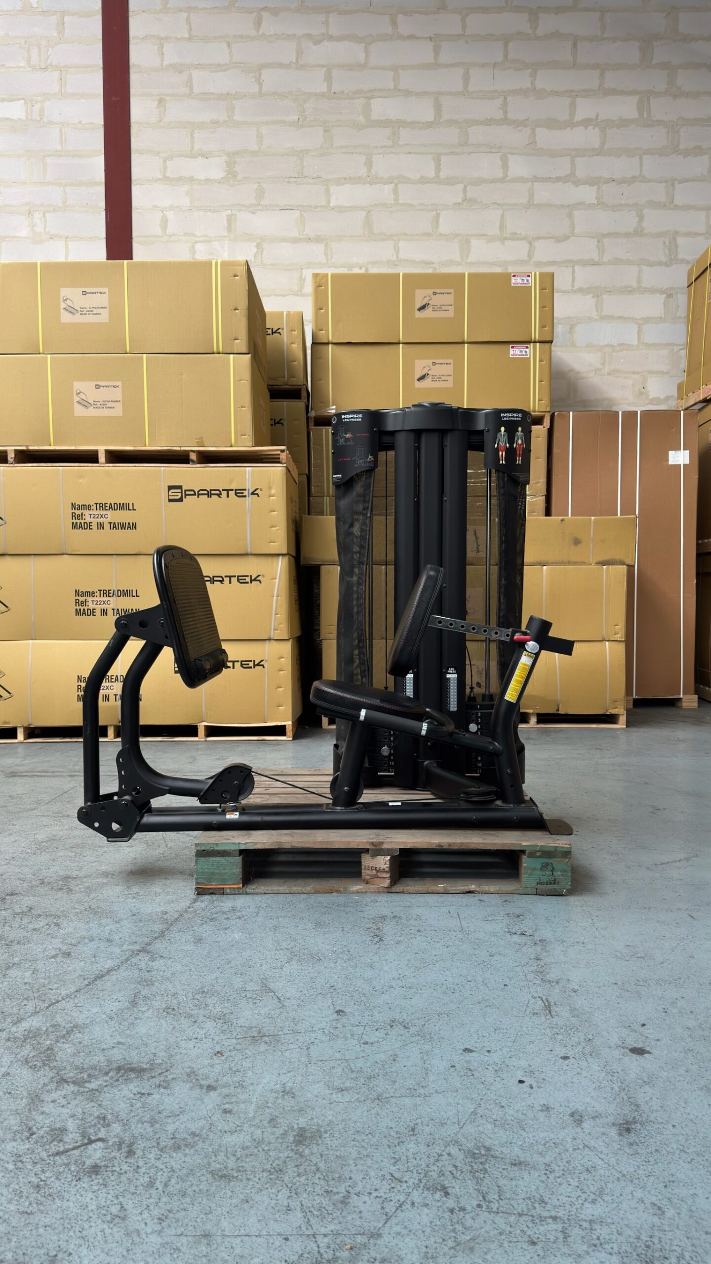Presse à cuisses guidée destinée au renforcement des quadriceps et des membres inférieurs.