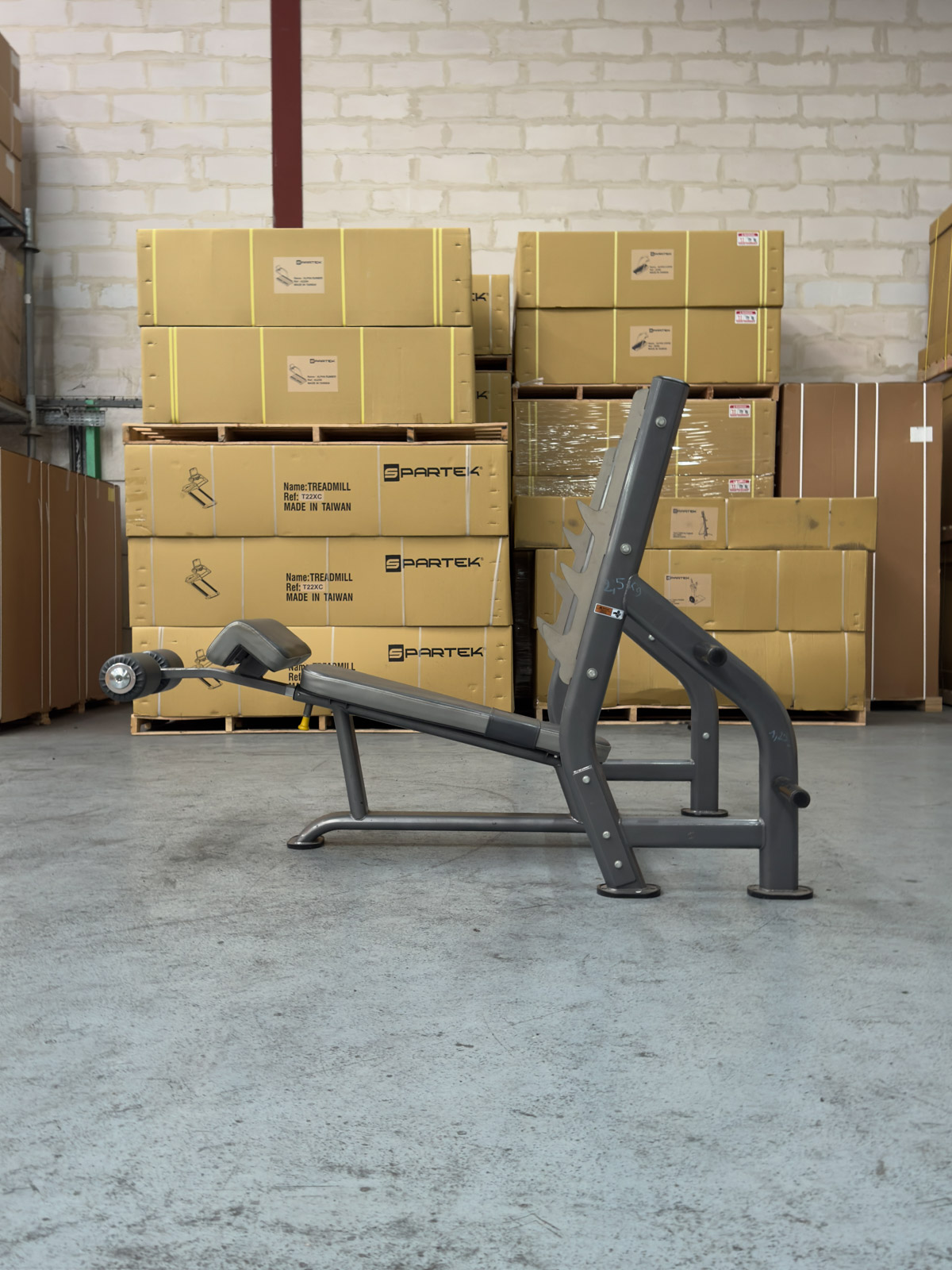 Développez la puissance de votre buste avec ce banc olympique décliné issu de la gamme IT70. Sa conception ergonomique assure un angle de travail idéal pour solliciter le grand pectoral avec une précision maximale. Équipé de supports de barres renforcés et d’une sellerie haute densité, ce modèle supporte les charges les plus lourdes tout en garantissant un maintien stable des jambes pour une sécurité totale durant l’effort.