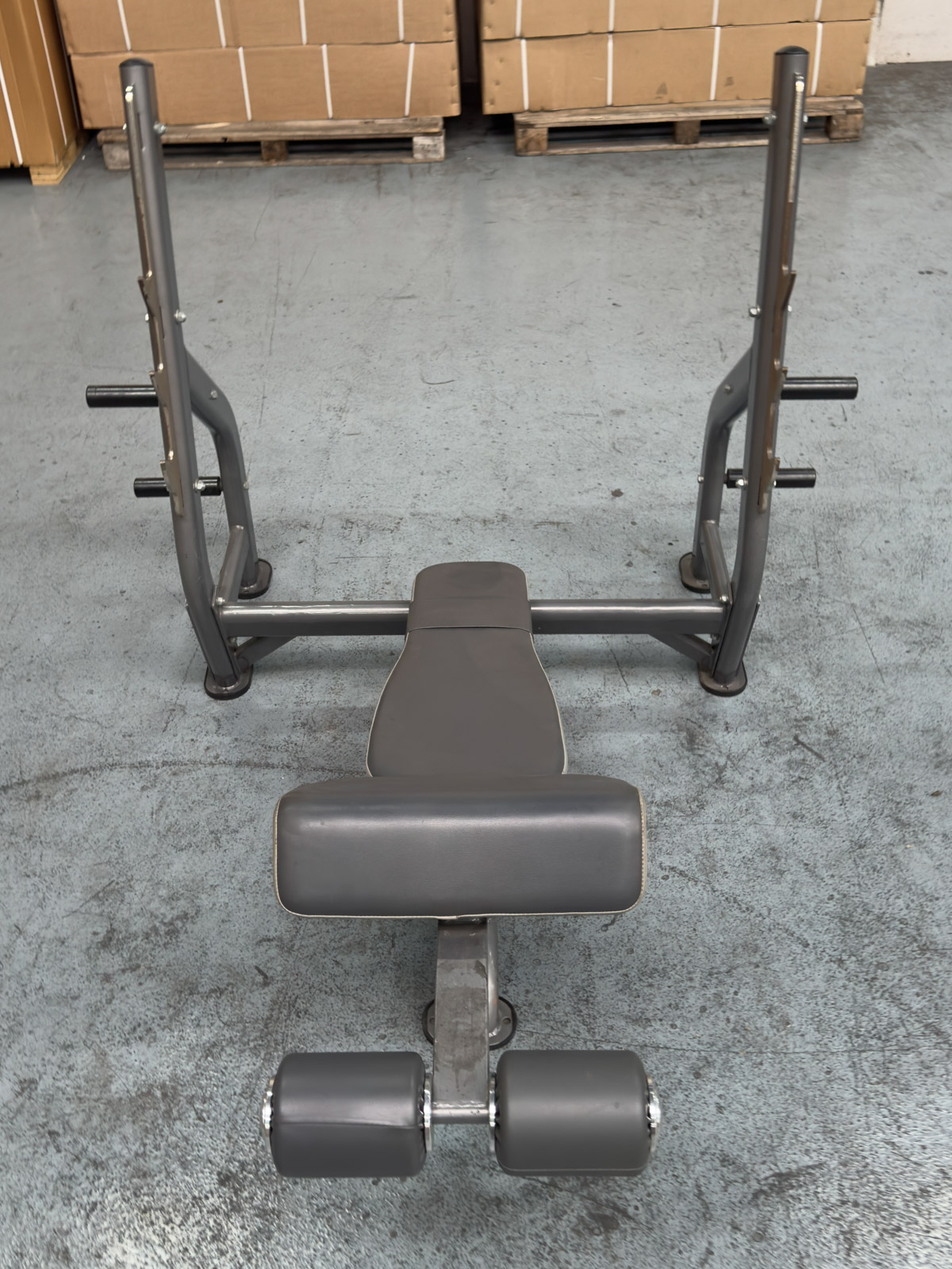 Banc olympique décliné Impulse IT7016 haute résistance. Poste de musculation robuste dédié au ciblage spécifique de la partie inférieure des pectoraux.