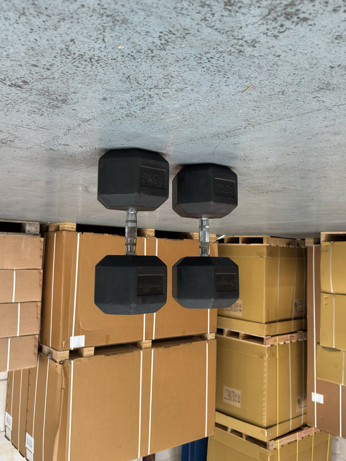 Poids total : 90 kg d’haltères.