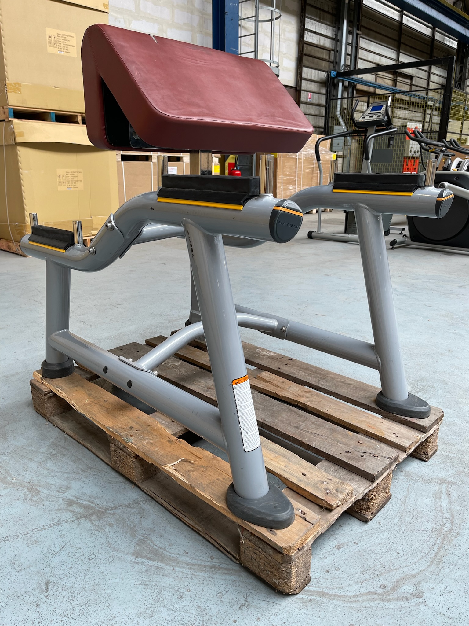 L’ergonomie du pupitre est pensée pour le confort et la performance : le large support rembourré présente une inclinaison optimale pour maximiser l’étirement en bas du mouvement et la contraction en haut. La partie inférieure du coussin est biseautée pour éviter toute pression inconfortable au niveau des aisselles.