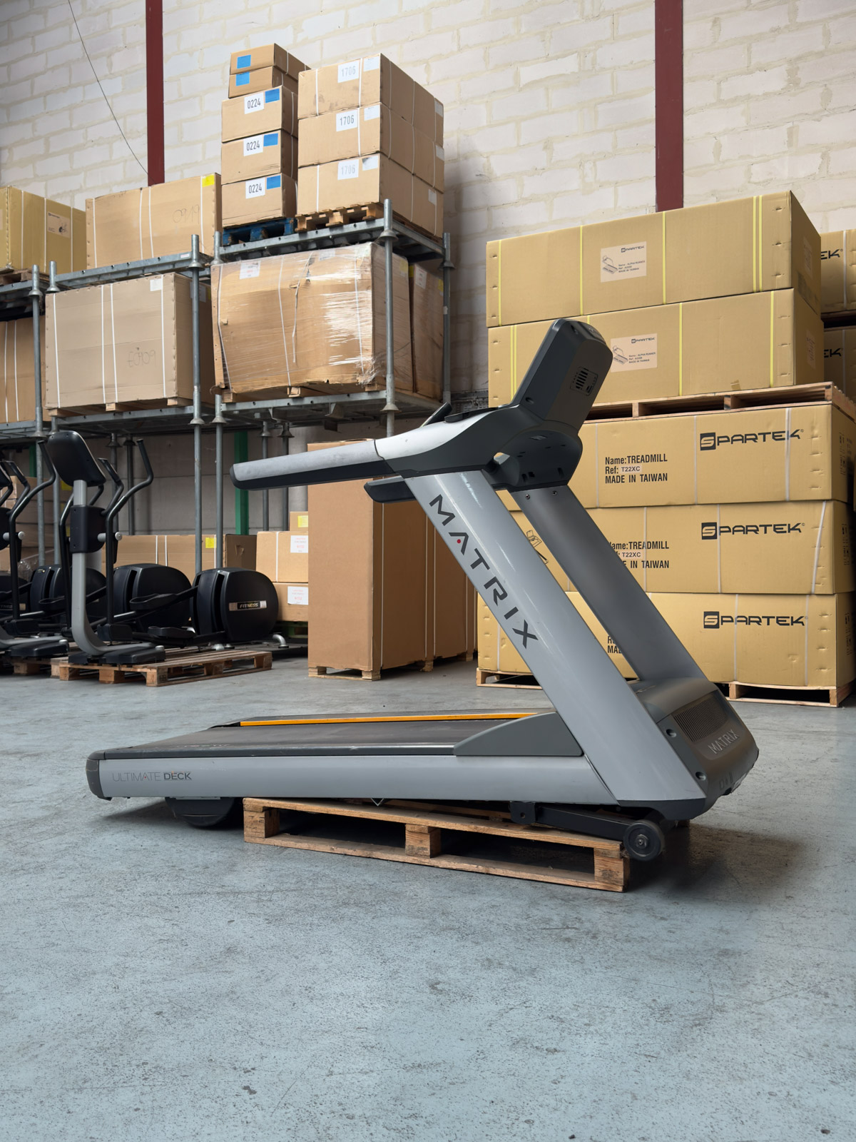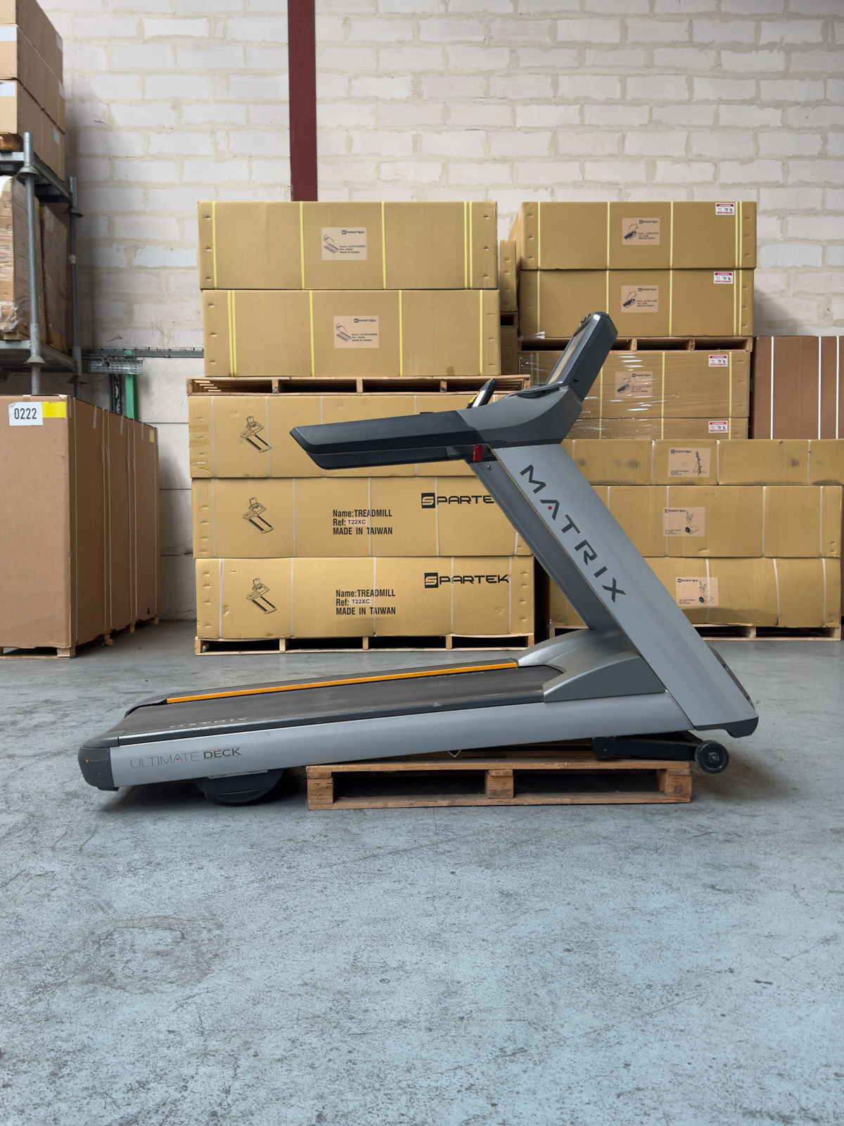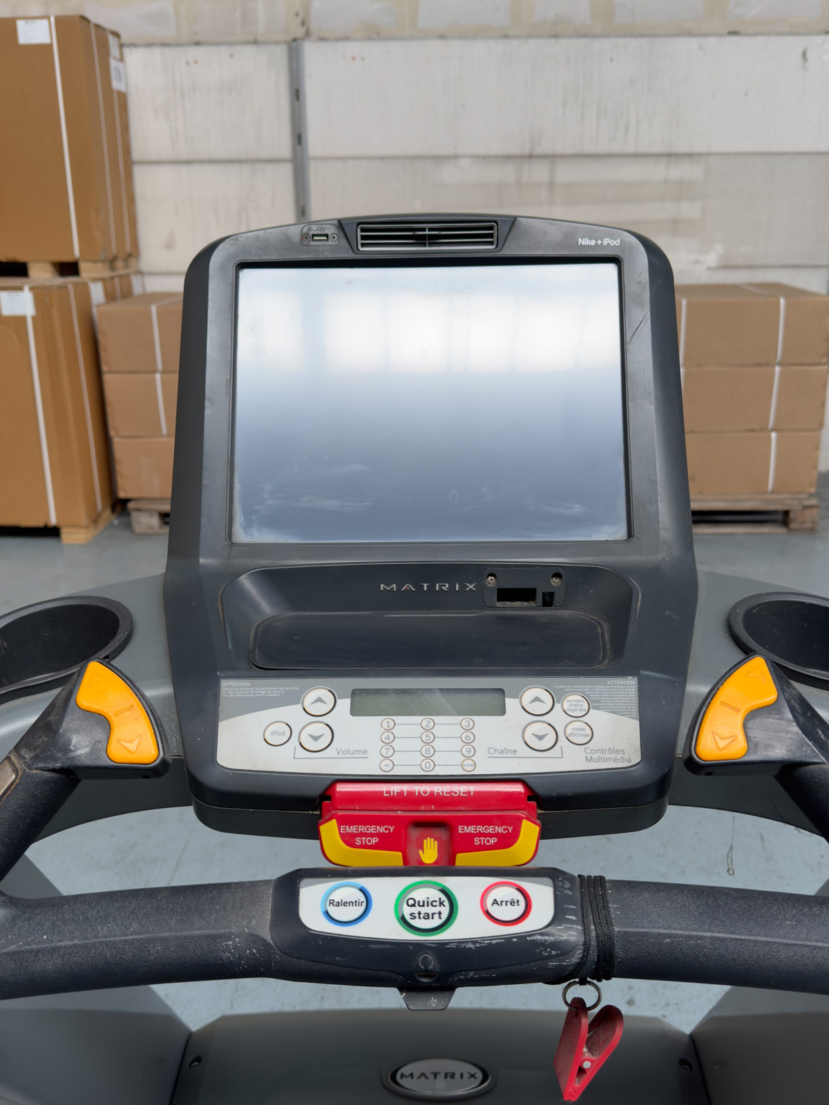 Tapis de course professionnel Matrix T7xe d'occasion haute performance. Équipé du système d'amorti Ultimate Deck, d'un moteur 5.0 HP et d'un écran tactile 15" connecté pour un entraînement cardio intensif et immersif.