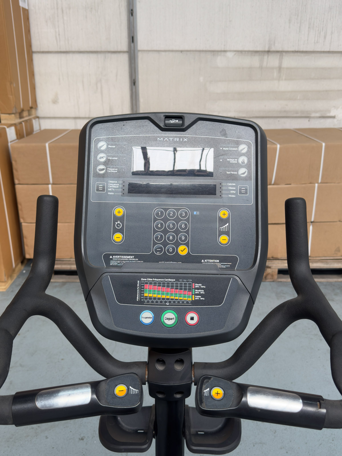 • Interface Intuitive : Console LED offrant un accès rapide aux programmes d’entraînement et un suivi précis des Watts et de la fréquence cardiaque.