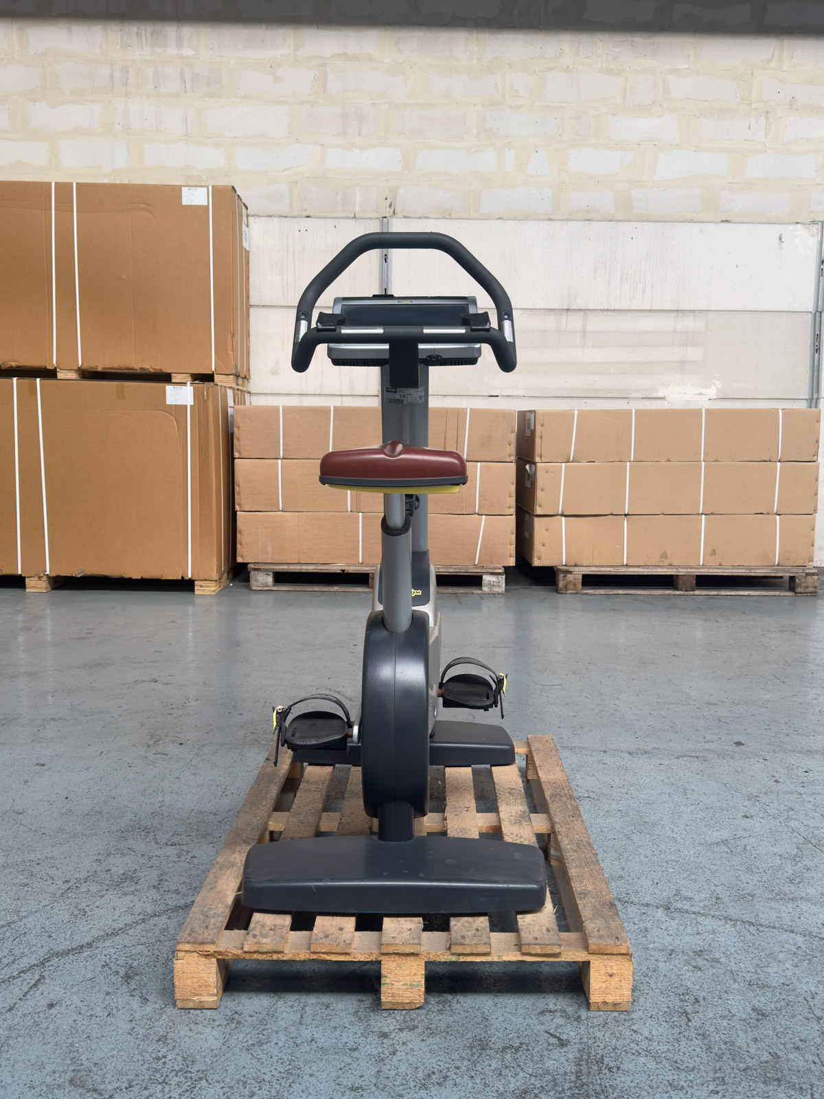 Le Technogym Excite Upright Bike de la série 700, ici présenté avec sa finition gris/argent et une sellerie bordeaux distinctive, est l’un des vélos droits les plus robustes et avancés du marché professionnel. Il intègre la console Unity / Visioweb, la version la plus luxueuse, dotée d’un écran tactile 19 pouces offrant une immersion totale (divers programmes) pour transformer l’entraînement cardio en un moment de divertissement. Son châssis robuste de 61 kg et son ergonomie parfaite assurent une stabilité à toute épreuve, une position de pédalage naturelle et un accès facile à toutes les morphologies, même en usage intensif.
